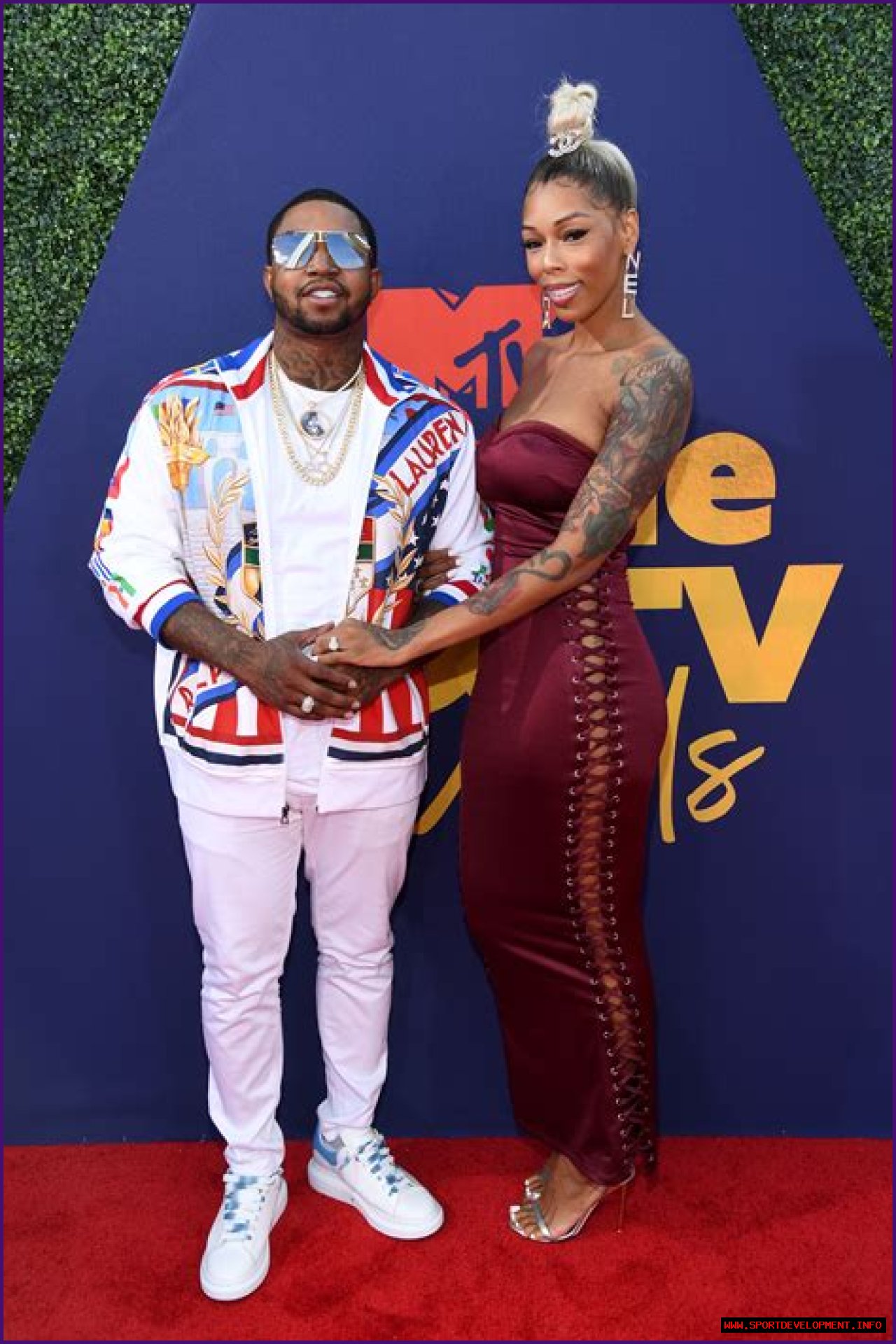Scrappy is 5 ft 10 (1.78 m), Celeb Height Wiki states. She usually appears to be above eye level with him when wearing heels, as seen on Love and Hip Hop, which has left some viewers guessing that the star is a lot taller than her beau.
